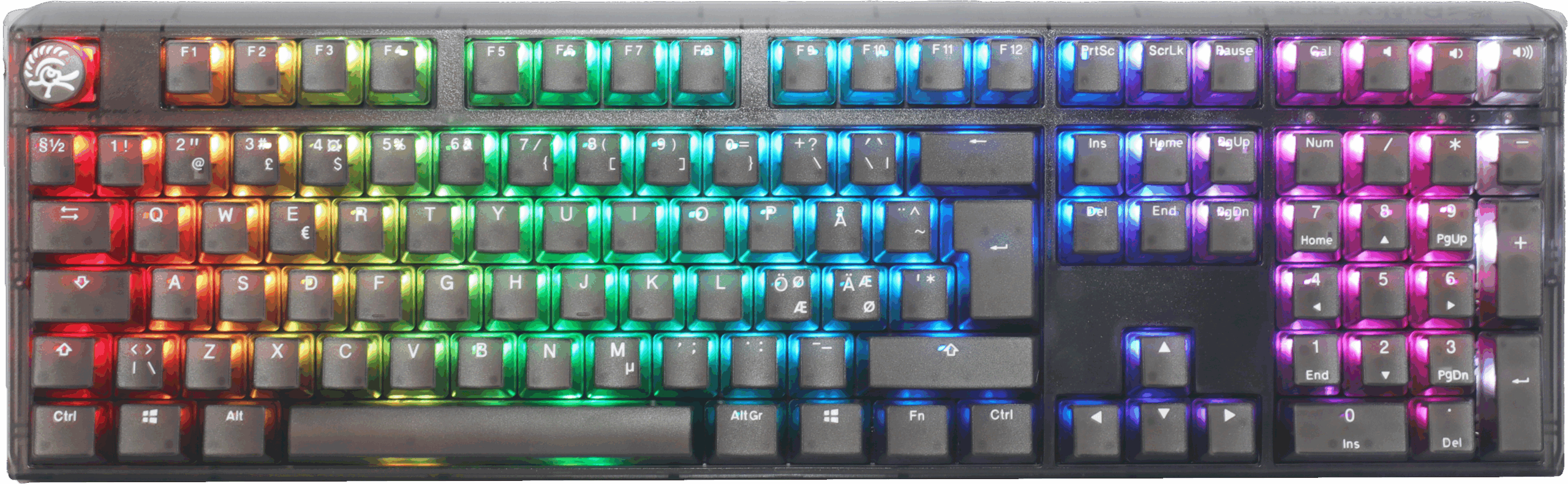 Aura Black Nordic tastaturet! Dette fuldstørrelse tastatur er skabt til gaming- og skriveentusiaster på det danske marked, der ønsker det bedste af begge verdener. Udstyret med Cherry Silen