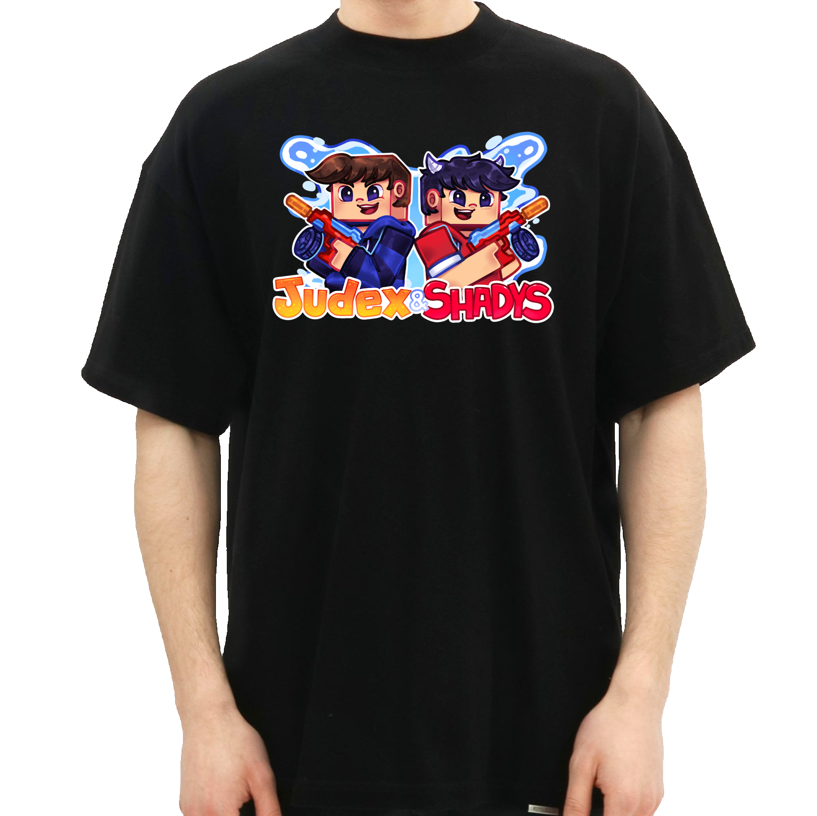 Er du fan af både Judex og Shadys? Så er denne t-shirt et must-have! Den officielle “Judex x Shadys Vandpistol Tee” samler de to populære YouTube-figurer i ét farverigt og actionfyldt