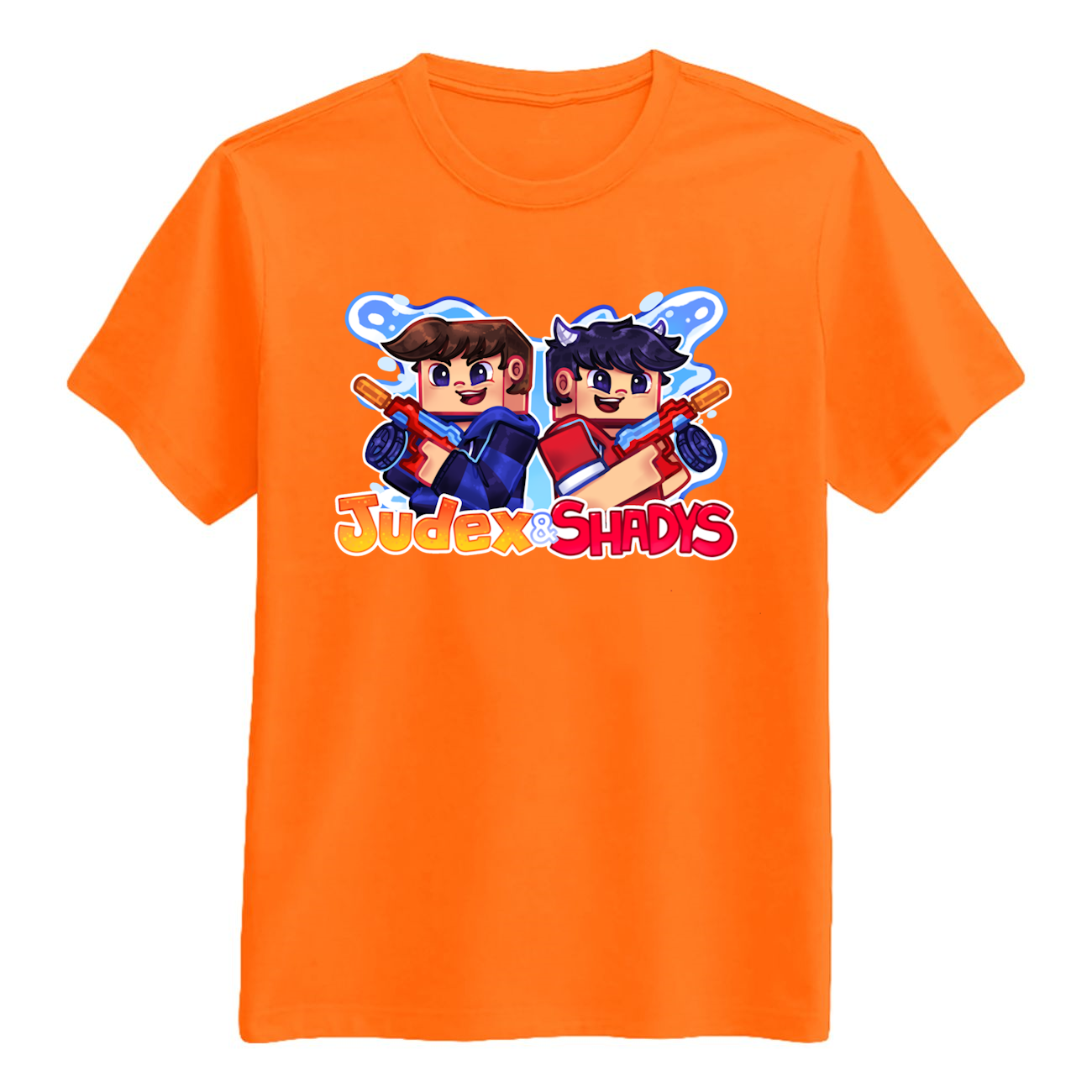 Er du klar til den vildeste vandkamp i sommerferien? Med denne superfriske Judex x Shadys Vandpistol T-shirt i orange er du 100 % kampklar! T-shirten har det sejeste motiv af YouTube-stjernerne Judex og